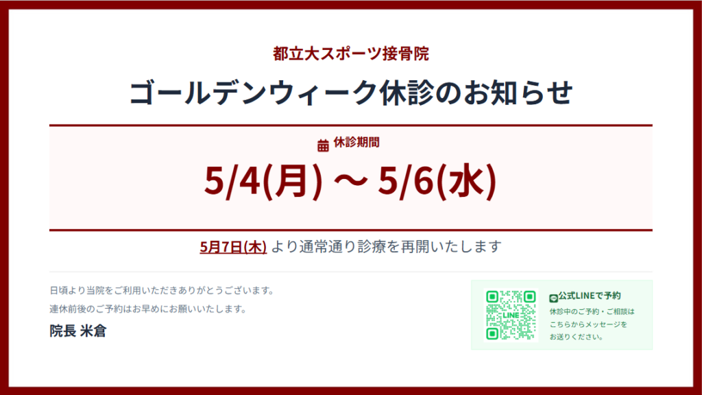 GW休暇のお知らせ